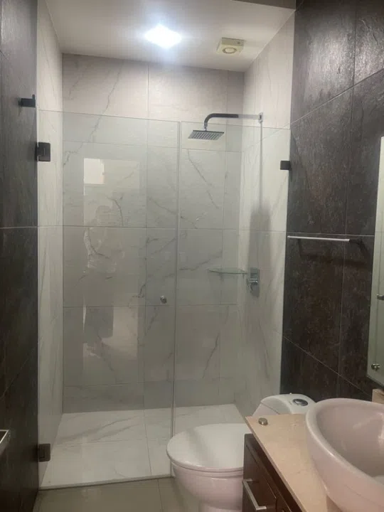 Diseño moderno y muy práctico para el día día puesto q entrando se puede ver el muro periférico del patio lo cual da una amplitud muy cómoda